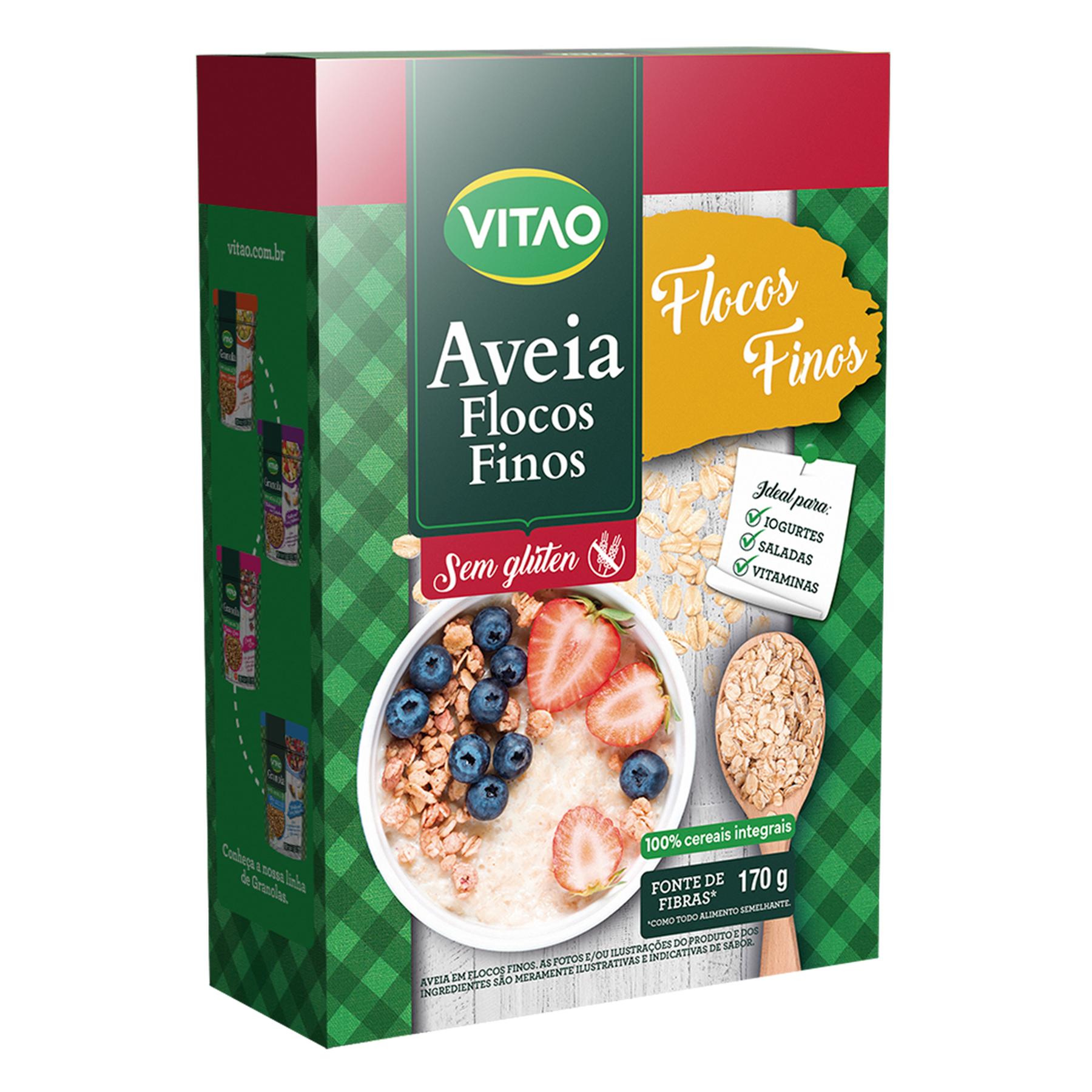 Aveia em flocos finos sem glúten Vitao é elaborada com rigoroso controle de qualidade desde o cultivo até o produto final. Indicada para pessoas que procuram um alimento com maior quantidade de fibras, vitaminas e minerais. Podendo ser consumida em diversas preparações como, sucos, vitaminas, sopas, além de ser ótima para consumir em “in natura” com frutas e iogurtes.